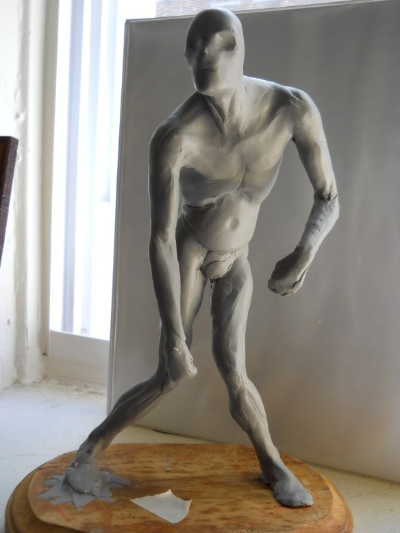 When O’Neill drew the scene I used as a the basis of the sculpture, he drew Mina and Hyde mostly in close-up, so I needed to guess at their relative positions and postures. I gave Mina ramrod-straight Victorian posture, her hands bunched into fists at her sides. The most recent issue of League of Extraordinary Gentlemen Vol. 3: Century 2009 included this picture of the (now immortal) Mina Murray: