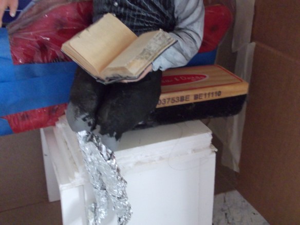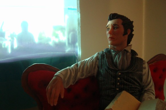 Sean built a couch and we put a sculpted figure on it. We built a room and put in a test window, and took test snapshots with a digital camera.