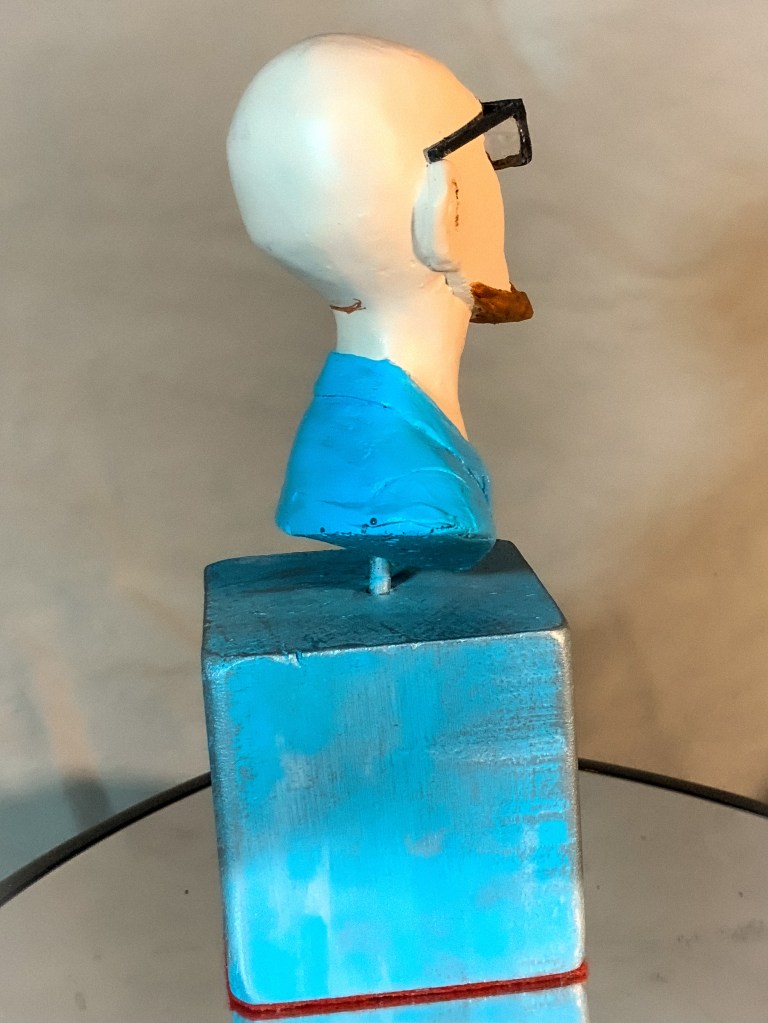 This minibust was sculpted with Sculpey Firm, Apoxie, and Cosclay, and is about 7″ tall.