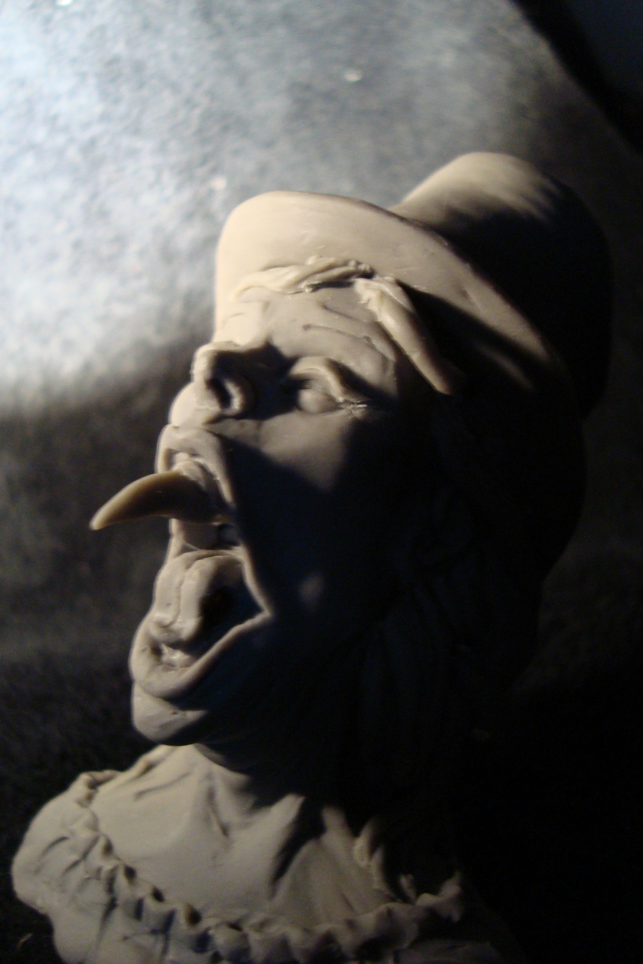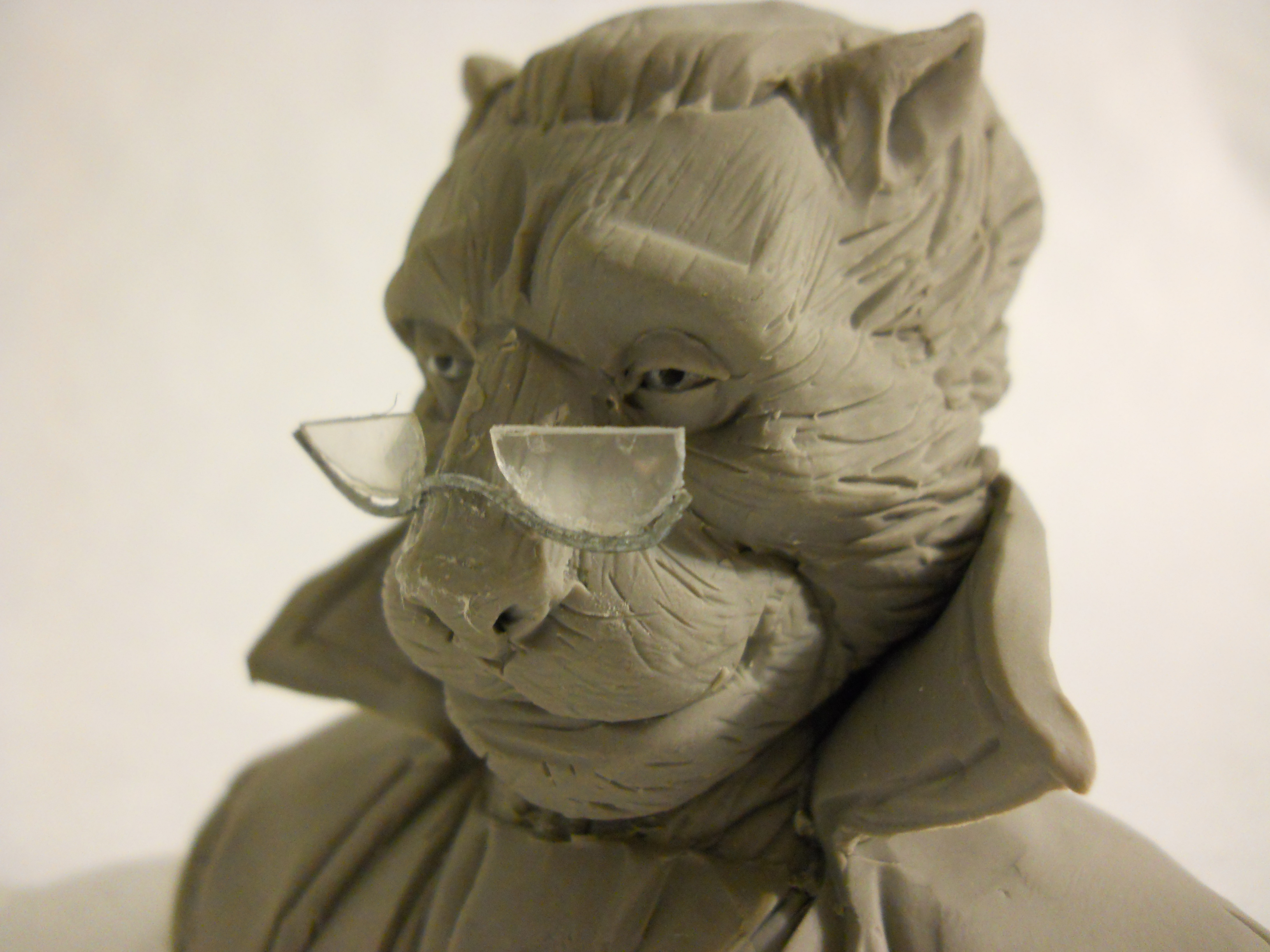 Based on Mary Shelley’s description of the literate, bilingual, articulate monster of her novel, Sean Downey and I designed this piece which I sculpted. It took us a while to finalize this design, which we wanted to be true to Shelley’s description above, but also possess some visual appeal.